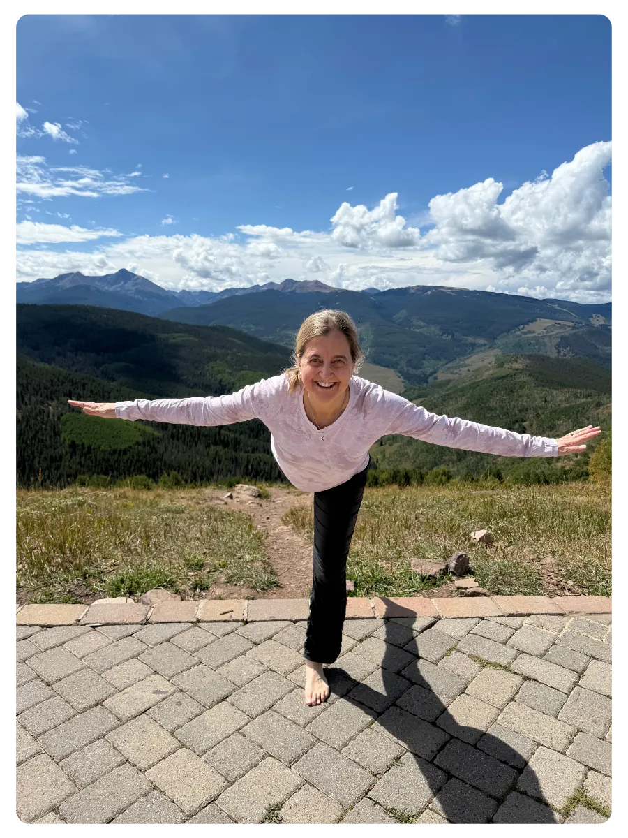 I'm becoming more self-aware and more accepting of myself as I practice with Kristine. In other words, I'm getting to know myself better and am less critical of myself when a pose doesn't look like a magazine cover. I hope to share what I'm learning in SYRS with others in the classes that I teach."